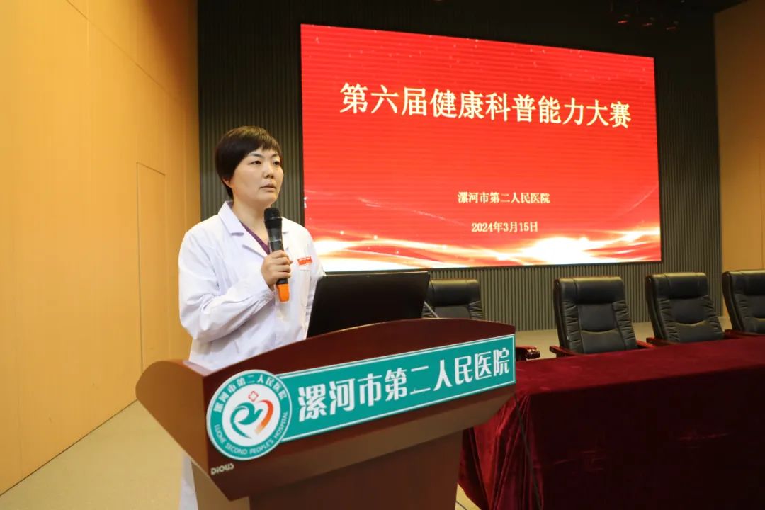 為進一步提升醫(yī)務工作者的健康科普能力,加強醫(yī)務工作者對健康工作方式的思考和拓展,營造全民關注健康科普的良好氛圍,助力健康漯河建設,3月15日下午,按照院黨委工作安排,市二院在12樓學術報告廳舉辦了第六屆健康科普能力大賽。院長王瑾,副院長郭長根、紀委書記孟德陽、工會主席李世學出席比賽現(xiàn)場,部分職能科長、科室主任、護士長和不值班醫(yī)護人員代表150余人參會。