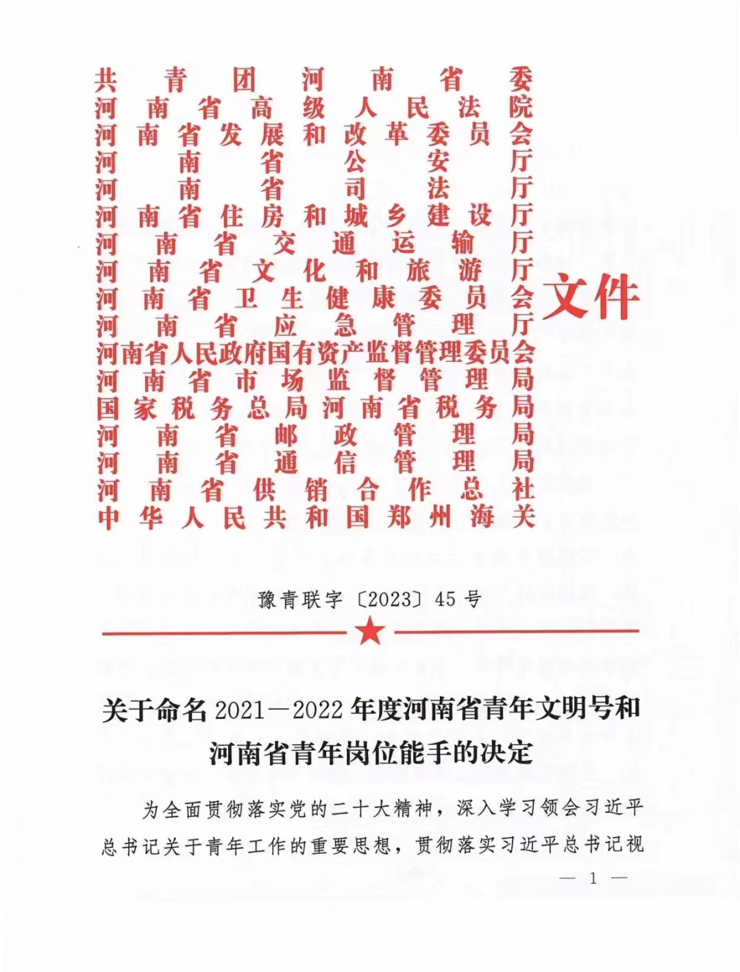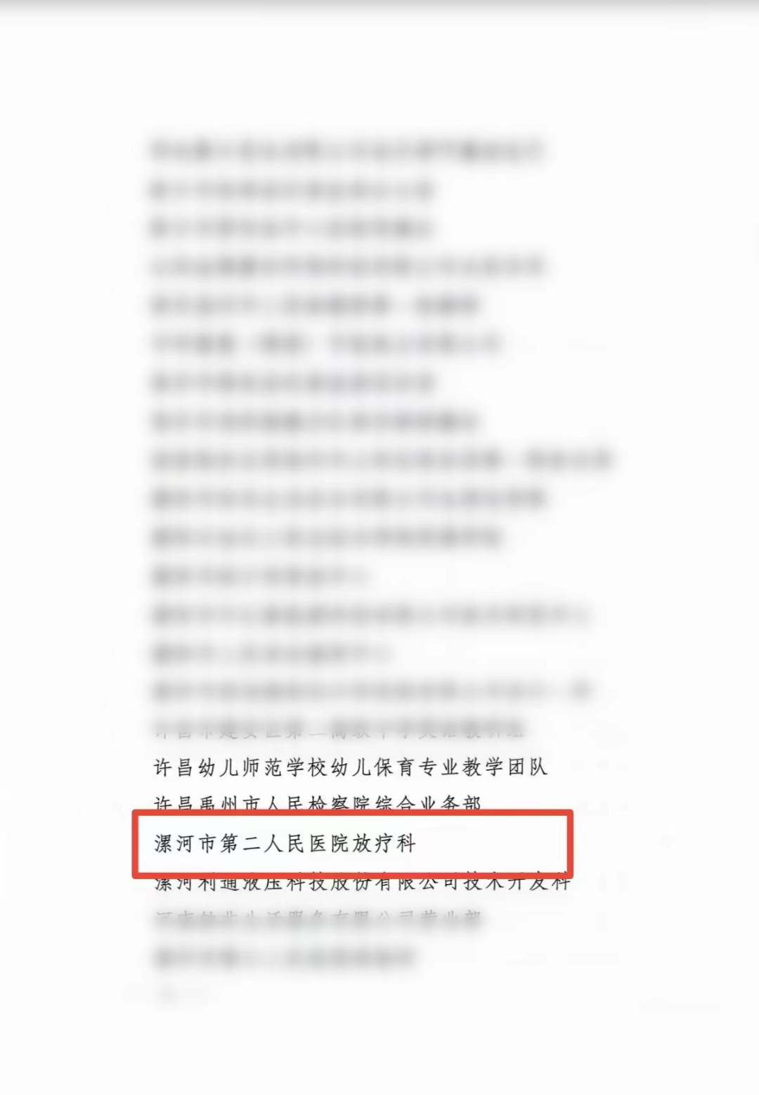 近日,共青團(tuán)河南省委等部門聯(lián)合印發(fā)了《關(guān)于命名“2021-2022年度河南省青年文明號(hào)和河南省青年崗位能手”的決定》,市二院放療科被授予河南省“青年文明號(hào)”榮譽(yù)稱號(hào)。