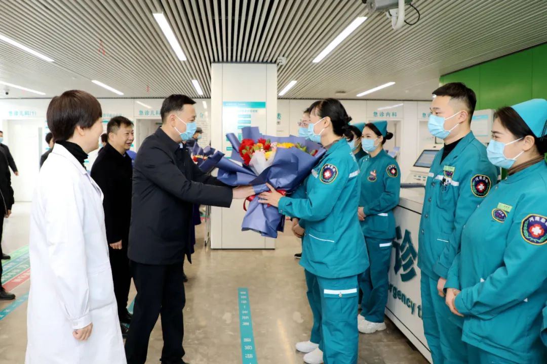 朱黎明一行先后到急診科、病人服務中心、影像科、皮膚科、中醫(yī)科、小兒心血管神經(jīng)血液科,小兒呼吸內(nèi)科看望慰問醫(yī)護人員,他表示,廣大醫(yī)護人員始終奮戰(zhàn)在醫(yī)療救治的最前線,承擔著光榮而艱巨的職責使命,為護佑全市人民健康提供了堅實保障,在新春佳節(jié)到來之際,謹代表市衛(wèi)健委向辛勤奉獻的市二院全體醫(yī)護人員表達誠摯的感謝和新年的祝福。