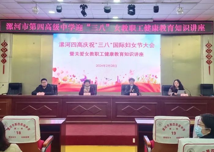 在三八婦女節(jié)來臨之際,為關(guān)愛女性健康,提高女性自我保健意識,增強(qiáng)疾病的防治能力,普及健康知識,應(yīng)漯河市第四高級中學(xué)領(lǐng)導(dǎo)邀請,2月28日下午,在社會工作部韓書環(huán)主任的積極協(xié)調(diào)組織下,漯河市骨科醫(yī)院(漯河醫(yī)專二附院、漯河市立醫(yī)院)婦產(chǎn)科何宏舸主任、外三科李賀鵬副主任醫(yī)師到該校為近200名女教職工進(jìn)行健康知識講座。