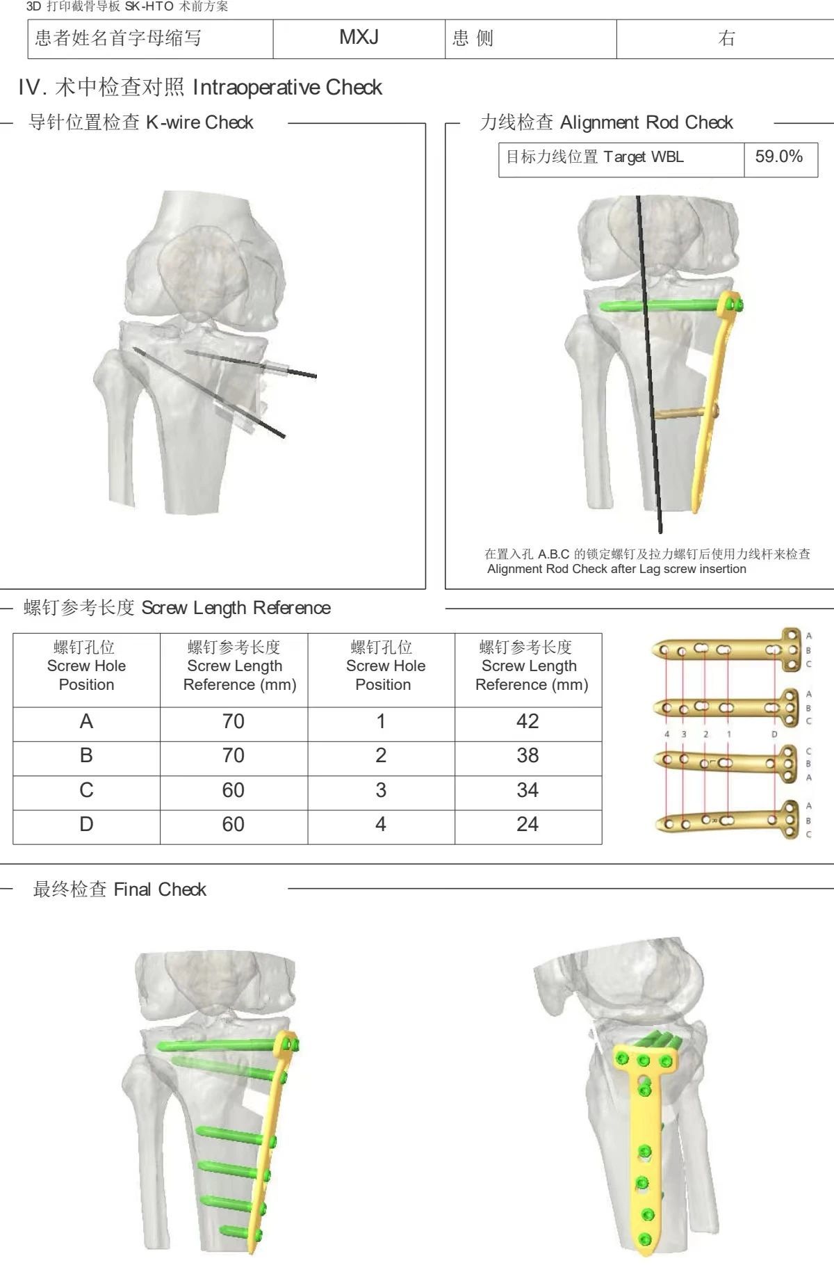 鋼板位置、螺釘位置及長度均可通過術前規(guī)劃計算,術中通過定位操作,基本與術前規(guī)劃一致,手術快速高效完成,外側(cè)合頁保留完整。無任何并發(fā)癥出現(xiàn)。術后見鋼板位置及力線糾正近乎完美!