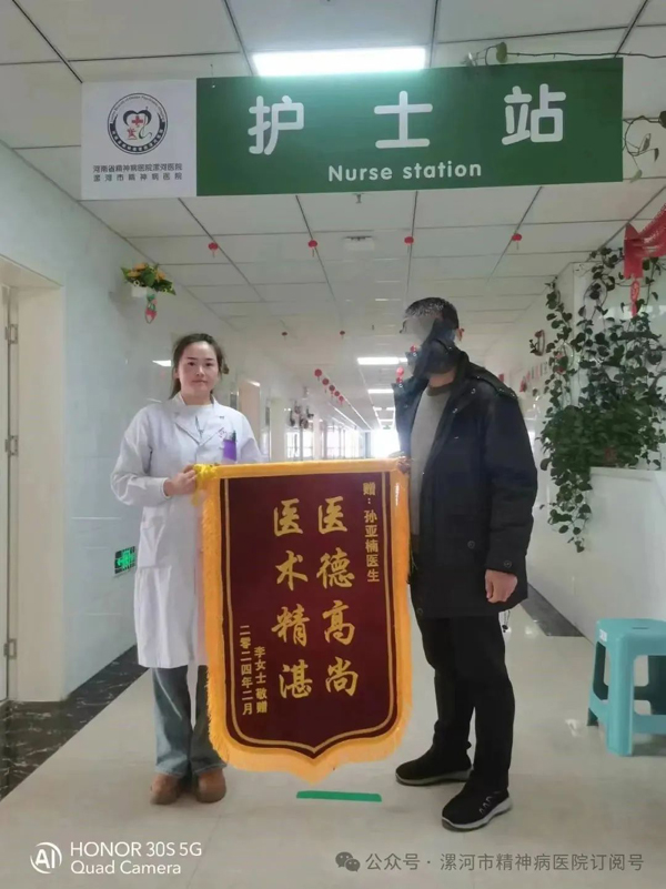 3月4日一大早,一名患者家屬懷著一顆無(wú)比感恩的心來(lái)到了漯河市精神病醫(yī)院精神四科,感謝我院孫亞南醫(yī)生及全體醫(yī)護(hù)人員,并送上一面錦旗,他的患者是一名在校學(xué)生,在家不出門(mén),不與人溝通,緊張、害怕,嚴(yán)重影響到日常生活,不能正常上學(xué),經(jīng)門(mén)診收住院,入院后,孫醫(yī)生耐心詢問(wèn)患者的病情,根據(jù)患者的癥狀進(jìn)行病情評(píng)估,制定了詳細(xì)的治療方案,通過(guò)一個(gè)多月的治療,患者癥狀明顯改善。能與人交流了,臉上也露出了久違的笑容。家屬對(duì)醫(yī)院的診療和服務(wù)水平非常滿意!