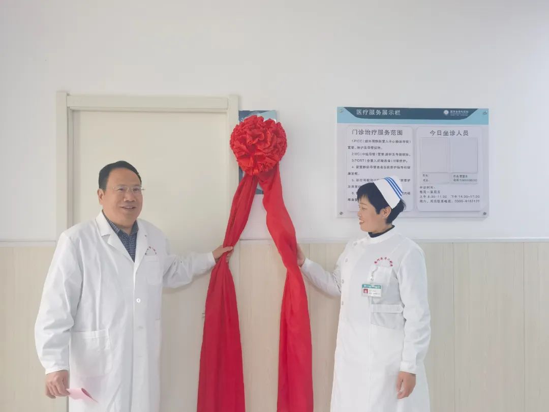 曹鵬克和趙春紅為靜脈治療護(hù)理門(mén)診開(kāi)診進(jìn)行揭牌。