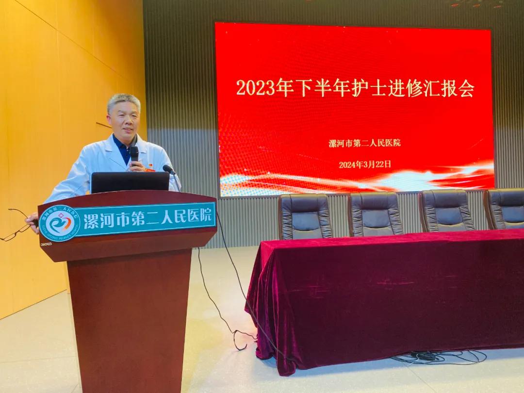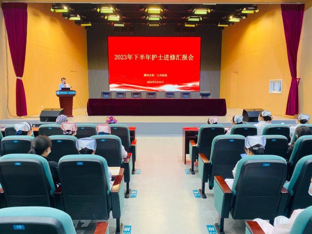 為進一步激發(fā)護理人員學習工作積極性,分享學習經驗,展示工作成效,有效推動護理??瓢l(fā)展,3月22日,市二院在十二樓學術報告廳舉辦了2023年下半年護士進修匯報會。副院長郭長根出席、各科室護士長、不值班護士約150人參加了會議。
