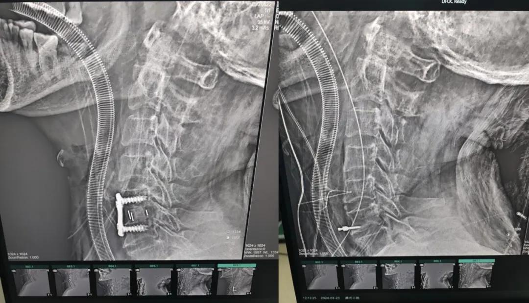 經(jīng)過縝密的術(shù)前準備和手術(shù)計劃,在鄭大一附院神經(jīng)外科張風江教授的指導下,神經(jīng)外科團隊順利為患者實施“顯微鏡下頸椎前路C5/C6椎間盤切除椎間融合+內(nèi)固定術(shù)”,手術(shù)時間不到1小時。術(shù)后患者恢復情況良好。