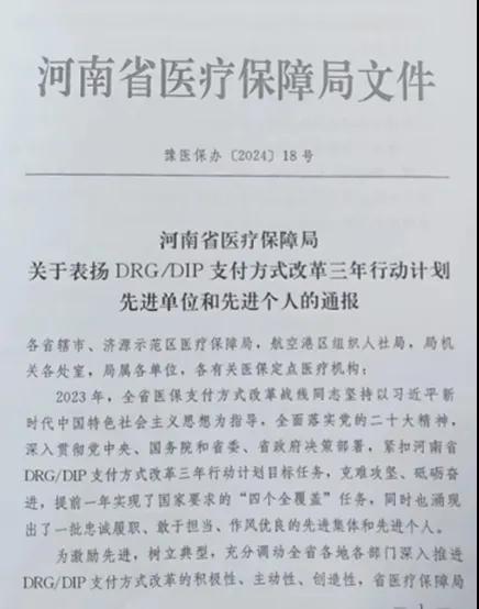 近日,在河南省醫(yī)療保障局公布的《關(guān)于表揚(yáng)DRG/DIP支付方式改革三年行動計(jì)劃先進(jìn)單位和先進(jìn)個(gè)人的通報(bào)》中,漯河市骨科醫(yī)院(漯河醫(yī)專二附院、漯河市立醫(yī)院)被授予河南省DRG/DIP支付方式改革三年行動計(jì)劃先進(jìn)單位。