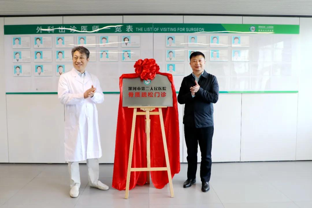 儀式現(xiàn)場,黨委書記魏松與黃宗強(qiáng)教授共同為“漯河市第二人民醫(yī)院骨質(zhì)疏松門診”揭牌。