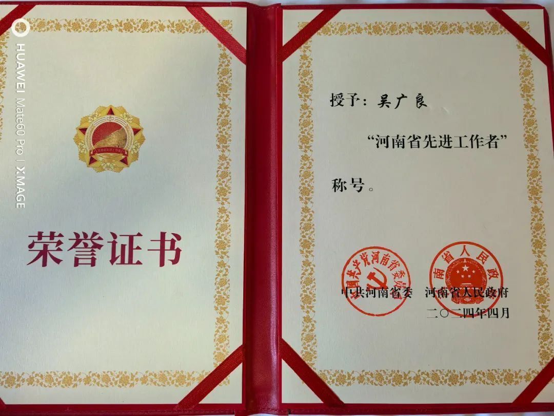 漯河市骨科醫(yī)院副院長吳廣良教授被授予“河南省先進工作者”稱號