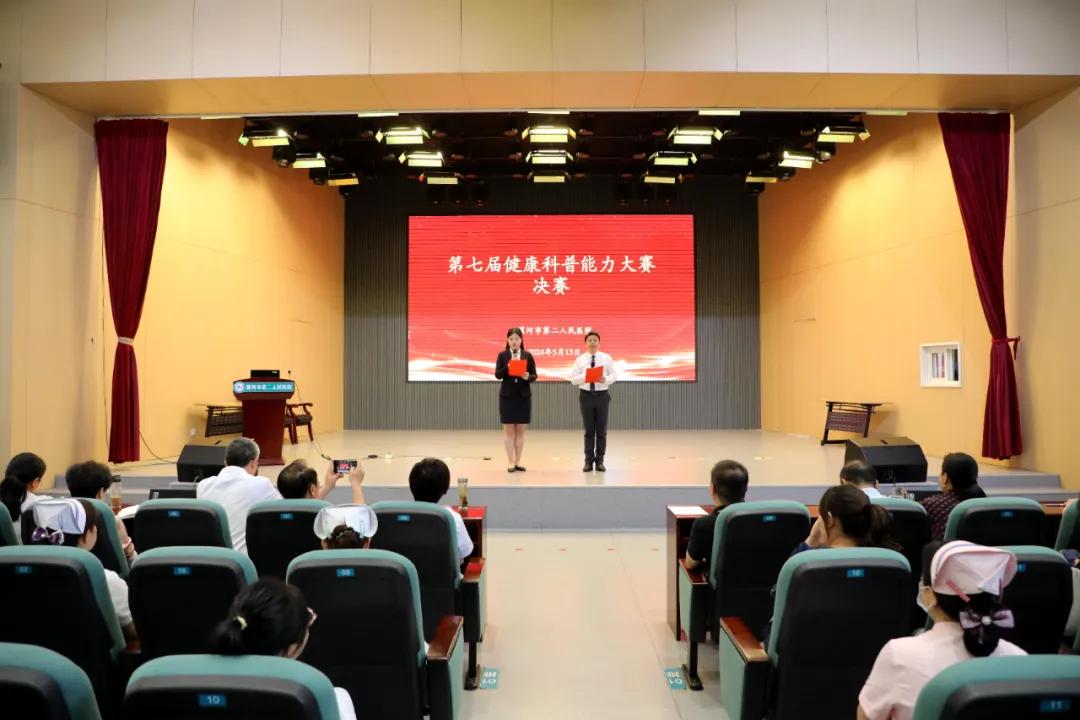 為貫徹落實“健康中國”戰(zhàn)略,不斷提高全院職工健康科普宣講能力,進(jìn)一步向社會公眾傳播正確科學(xué)的健康生活方式及防病治病理念,5月13日下午,市二院在12樓學(xué)術(shù)報告廳舉辦第七屆健康科普能力大賽。黨委書記魏松、院長王瑾及班子成員、部分中層干部、臨床科室職工代表100余人參加了此次活動。