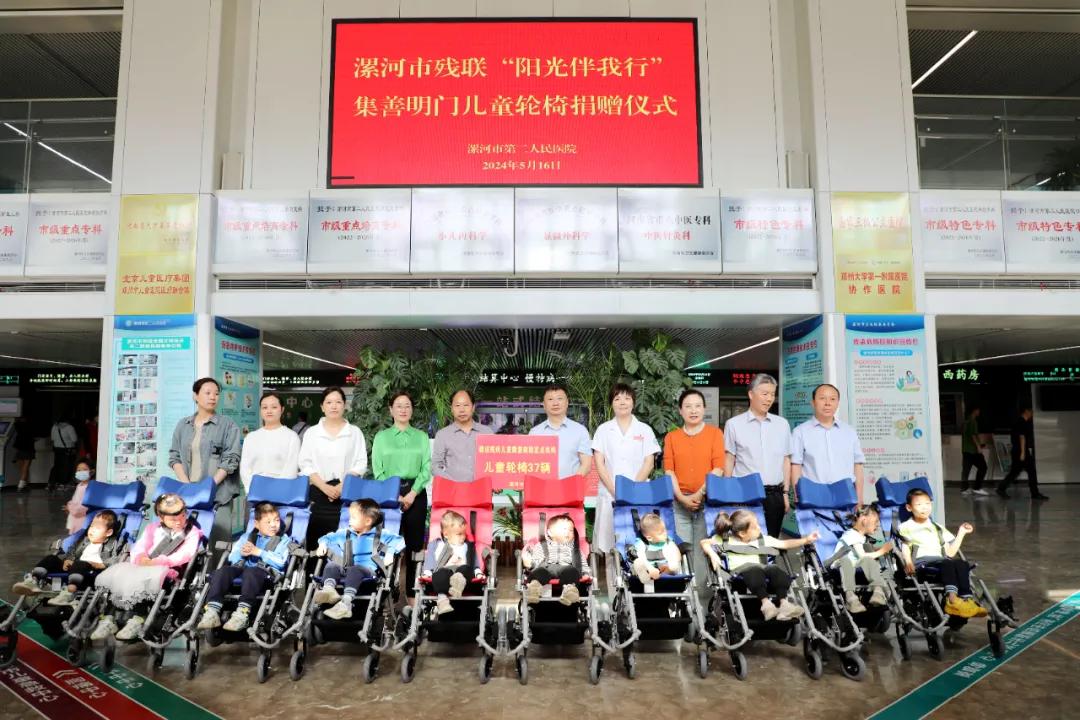 5月16日,在第三十四次全國助殘日到來之際,漯河市殘聯(lián)、市二院聯(lián)合舉辦“陽光伴我行”集善明門兒童輪椅捐助活動,將黨和政府的關(guān)懷送給殘疾兒童及其家庭。市殘聯(lián)黨組書記李國平、理事長郭德菊、康復部部長邵小康、康復中心主任劉瑩瑩,市二院黨委書記魏松、院長王瑾及其他領(lǐng)導班子成員、相關(guān)科室負責人參加了捐贈儀式。儀式由副院長張曉東主持。