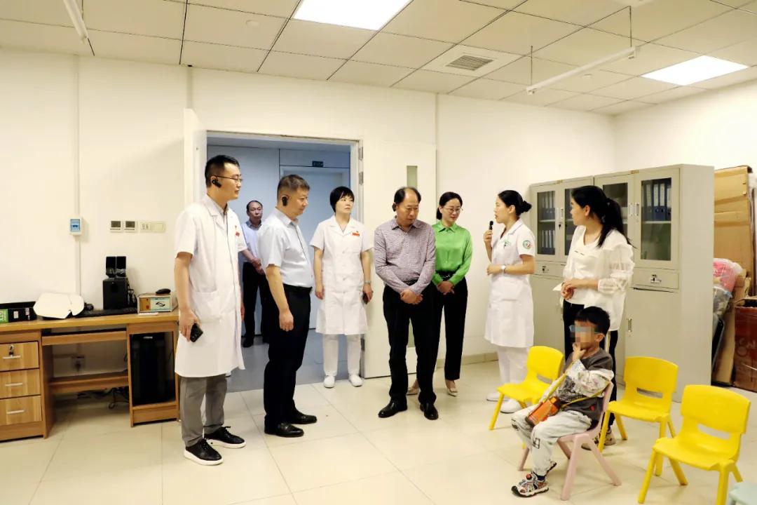 隨后,市殘聯(lián)黨組書記李國平一行實地查看了一樓大廳醫(yī)院概況展板、眼科門診、低視力康復中心、聽力測試室、兒童保健科、兒童康復科治療區(qū)、康復科治療區(qū)等地,聽取相關(guān)情況介紹,并與殘疾兒童和家長親切交流,詳細了解孩子們家庭狀況、康復療效等,對市二院開展殘疾兒童康復救助工作給予高度評價。