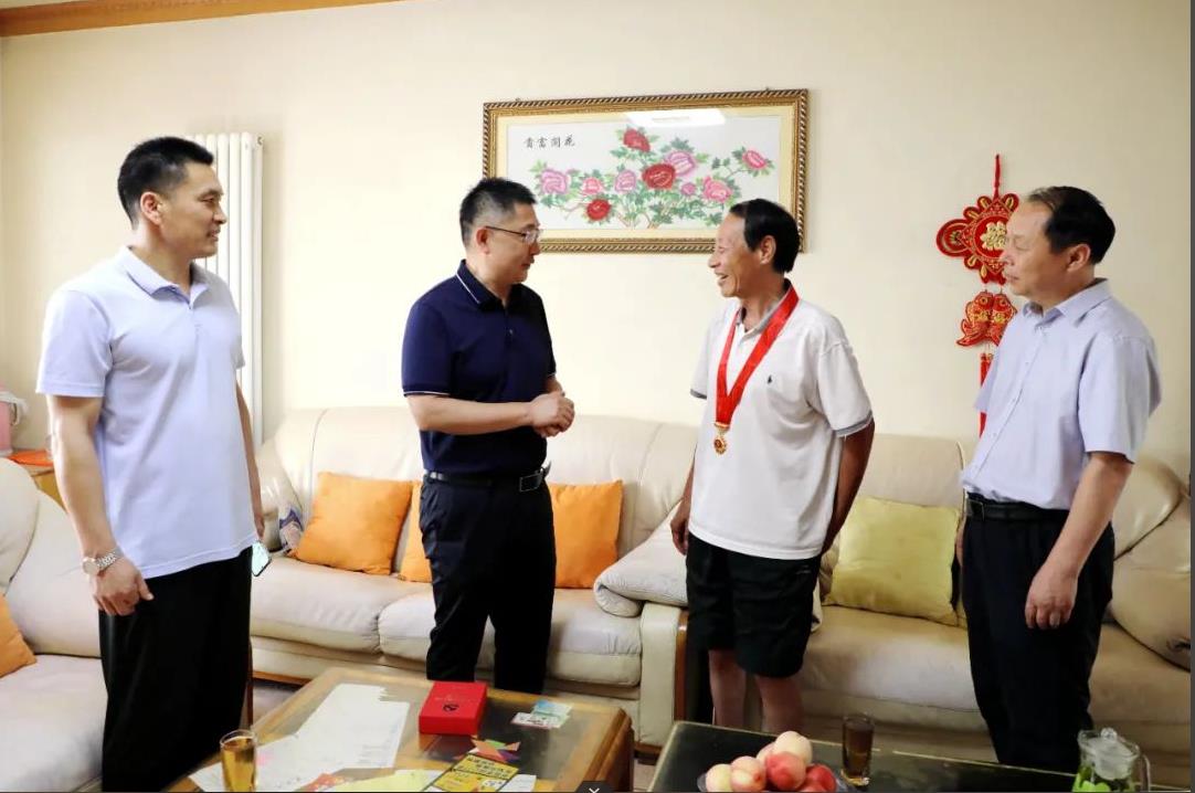 慰問過程中,王向良同志為謝學政同志戴上沉甸甸的紀念章,關切詢問謝學政同志及其家人的生活和身體狀況。孟德陽同志受院黨委的委托,向謝學政同志為醫(yī)院的發(fā)展所做出的辛勤付出、無私奉獻表達了衷心感謝,叮囑他保重身體,今后有什么困難要及時告知醫(yī)院,醫(yī)院是他永遠的后盾,并希望他一如既往地關心醫(yī)院工作,為醫(yī)院高質量發(fā)展積極建言獻策。