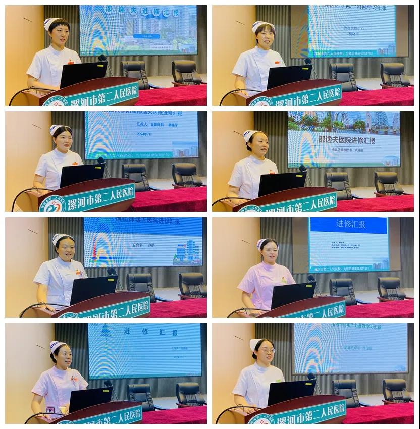 匯報(bào)會(huì)上,12名進(jìn)修護(hù)士分別從不同專(zhuān)業(yè)領(lǐng)域,將自己外出學(xué)習(xí)的所見(jiàn)所聞、所思所想等用精彩的圖文,以PPT的形式展示了所進(jìn)修醫(yī)院的專(zhuān)業(yè)技術(shù)、管理模式、護(hù)理理念、人性化護(hù)理服務(wù)、專(zhuān)科護(hù)理特點(diǎn)等,并結(jié)合各自的專(zhuān)業(yè)特點(diǎn)和學(xué)習(xí)方向,自己專(zhuān)科建設(shè)、護(hù)理文化、管理理念、先進(jìn)技術(shù)、工作流程、服務(wù)細(xì)節(jié)、學(xué)習(xí)感悟等方面進(jìn)行多角度、全方位的展示。同時(shí)將自身所學(xué)與工作實(shí)際相結(jié)合,制定了下一步工作改進(jìn)方案,達(dá)到了“一人學(xué)習(xí)、全院共享、共同進(jìn)步”的目的。本次匯報(bào)既是進(jìn)修成效的分享交流,更是一次思維的碰撞、專(zhuān)科的交流、理念的創(chuàng)新。