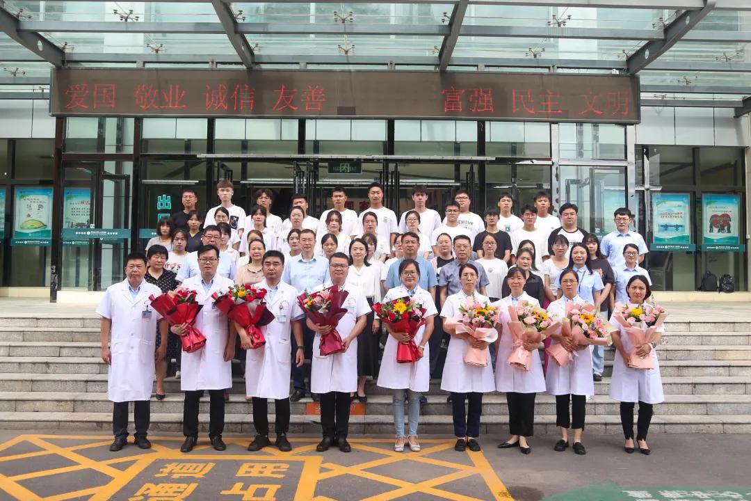典禮現(xiàn)場(chǎng)還舉行了拜師儀式,來(lái)自臨床專(zhuān)業(yè)的8位導(dǎo)師代表向?qū)W員代表授予白大衣和聽(tīng)診器,學(xué)員代表向?qū)煷慝I(xiàn)花。