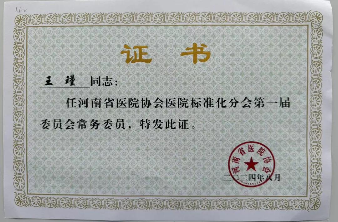 漯河市二院院長王瑾當(dāng)選河南省醫(yī)院協(xié)會醫(yī)院標(biāo)準(zhǔn)化管理分會常務(wù)委員
