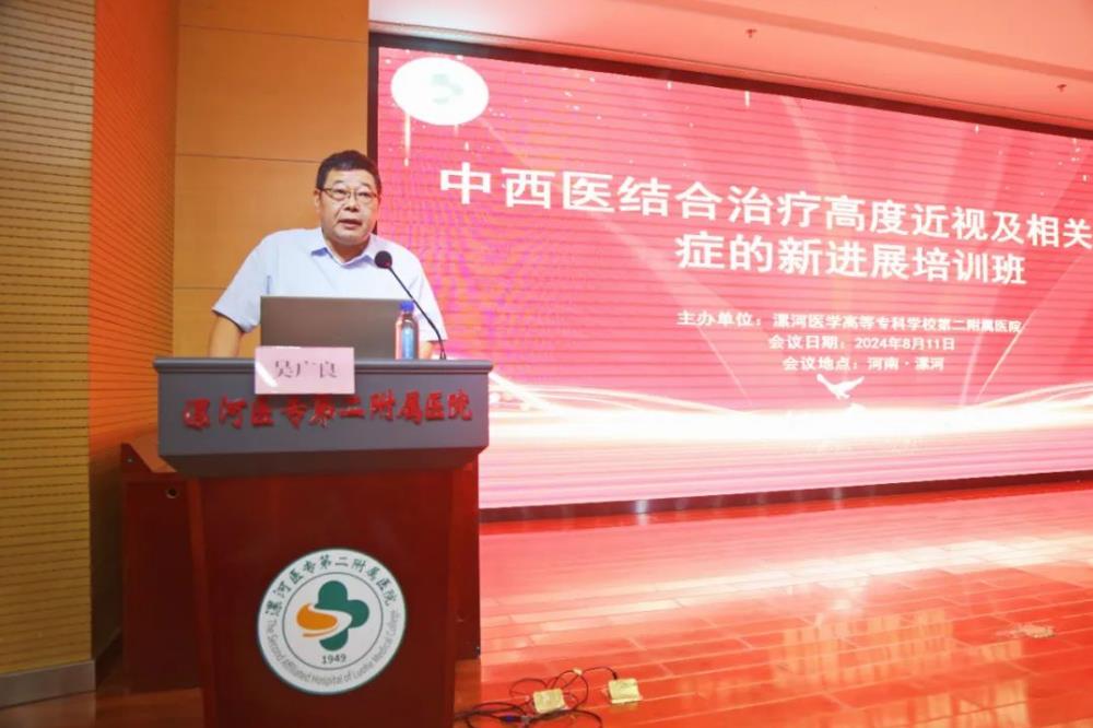副院長吳廣良代表醫(yī)院對遠(yuǎn)道而來參加培訓(xùn)班的專家教授表示熱烈的歡迎,強(qiáng)調(diào)構(gòu)建眼科學(xué)術(shù)交流平臺(tái)的重要性。他希望通過此次中西醫(yī)結(jié)合治療高度近視及相關(guān)并發(fā)癥的新進(jìn)展培訓(xùn)班,為眼科同仁提供更多深入學(xué)習(xí)和交流的機(jī)會(huì),共同推進(jìn)漯河市及周邊地市眼科醫(yī)學(xué)的蓬勃發(fā)展。