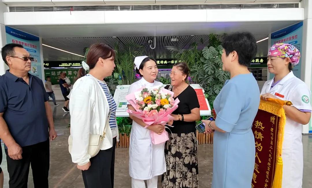 8月23日,來(lái)自鞏義的患者家屬一行四人攜鮮花、錦旗、禮品,驅(qū)車200公里到市二院,找到該院副院長(zhǎng)劉橋和重癥醫(yī)學(xué)科護(hù)士長(zhǎng)蔡新華直接表達(dá)來(lái)意:我們要給貴院重癥醫(yī)學(xué)科護(hù)士王美娜“送禮”,并希望院領(lǐng)導(dǎo)一定要好好表?yè)P(yáng)她:“要是沒(méi)有她,我們都不敢想會(huì)有啥后果!”