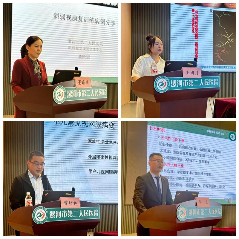 市二院董晗麗視覺視訓(xùn)師就《斜弱視康復(fù)訓(xùn)練病例分享》進(jìn)行了交流;市中心醫(yī)院王園月醫(yī)生對(duì)《早產(chǎn)兒視網(wǎng)膜病變的規(guī)范化診療及隨訪》進(jìn)行了解讀;市醫(yī)專二附醫(yī)院曹培林醫(yī)生分享了《小兒常見視網(wǎng)膜相關(guān)病變的診治經(jīng)驗(yàn)》;市二院眼科主任李立分享了《上瞼下垂的診斷及治療》。