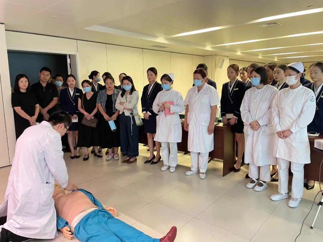 原野醫(yī)生著重介紹了胸痛患者的院內(nèi)緊急救治程序及心肺復(fù)蘇術(shù)的三個(gè)核心步驟,并借助模型人進(jìn)行了細(xì)致、規(guī)范的現(xiàn)場(chǎng)演示,同時(shí),他對(duì)心肺復(fù)蘇術(shù)進(jìn)行了深入指導(dǎo),展示了急救的完整過(guò)程,讓急救知識(shí)更加直觀易懂。經(jīng)過(guò)本次培訓(xùn),導(dǎo)診工作人員掌握了急救相關(guān)知識(shí)和操作技能,為積極參加急救行動(dòng)增強(qiáng)了信心。
