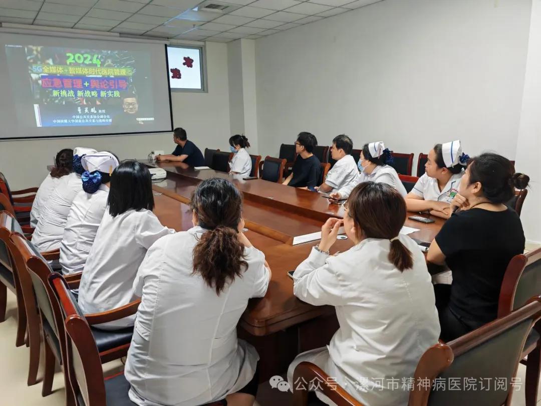 在當今互聯(lián)網(wǎng)時代,網(wǎng)絡(luò)輿論熱點頻出、輿情多發(fā)頻發(fā),輿情的社會影響力之大,監(jiān)測輿情、應(yīng)對輿情成為一項十分重要的工作。為了提升漯河市精神醫(yī)院中層干部面對輿情和突發(fā)事件的應(yīng)對能力,9月26日下午三點半,在四樓小會議室開展了《醫(yī)院輿情和突發(fā)事件應(yīng)對方法》的專題培訓,知名專家董關(guān)鵬教授進行線上授課。