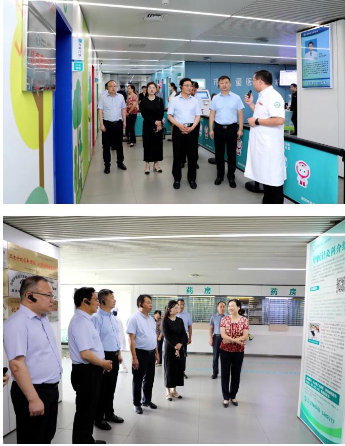 余亞明院長一行在門診大廳聽取了市二院近年來高質量發(fā)展情況介紹,并到兒科門診、中醫(yī)針灸科等點位實地參觀。先后聽取了漯河市兒童醫(yī)療中心副主任、市二院小兒呼吸內科主任郭先鋒,中醫(yī)針灸科副主任趙劍鋒關于河南省重點培育學科兒科和河南省重點中醫(yī)??浦嗅t(yī)針灸科相關經(jīng)驗和特色做法的講解。