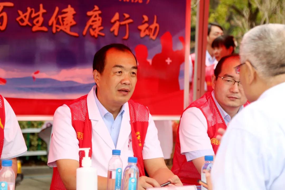 喜迎國慶,健康惠民。9月28日上午,在市衛(wèi)健委的統(tǒng)一組織下,漯河市骨科醫(yī)院(漯河醫(yī)專二附院、漯河市立醫(yī)院)黨委書記柴運洪、院長王齊超、副院長吳廣良帶領由骨科、內(nèi)科、外科、眼科、皮膚科、護理部、社工部共18位醫(yī)療專家組成的志愿者服務隊,在雙匯廣場開展了“服務百姓健康行動”集中大型義診活動。