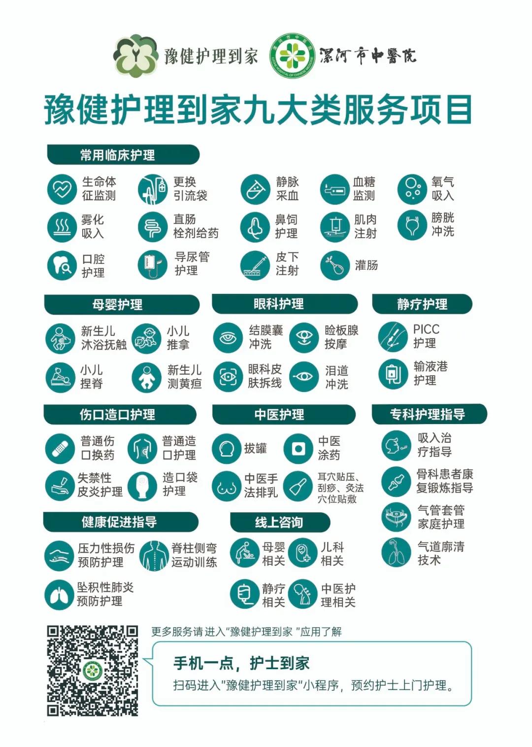 根據(jù)國家衛(wèi)生健康委、國家中醫(yī)藥管理局《關于印發(fā)進一步改善護理服務行動計劃(2023-2025年)的通知》《河南省護理事業(yè)發(fā)展規(guī)劃(2021-2025年)》等相關文件要求,為進一步滿足人民群眾多樣化、差異化的護理服務需求,漯河市中醫(yī)院自2022年開展的“護士到家”服務平臺已為眾多患者提供護士上門服務,收到了極好的社會反響。現(xiàn)根據(jù)省、市衛(wèi)健委“互聯(lián)網(wǎng)+護理服務”相關文件精神和工作要求,正式入駐“豫健護理到家”平臺,服務更全面,目前也已完成首單。