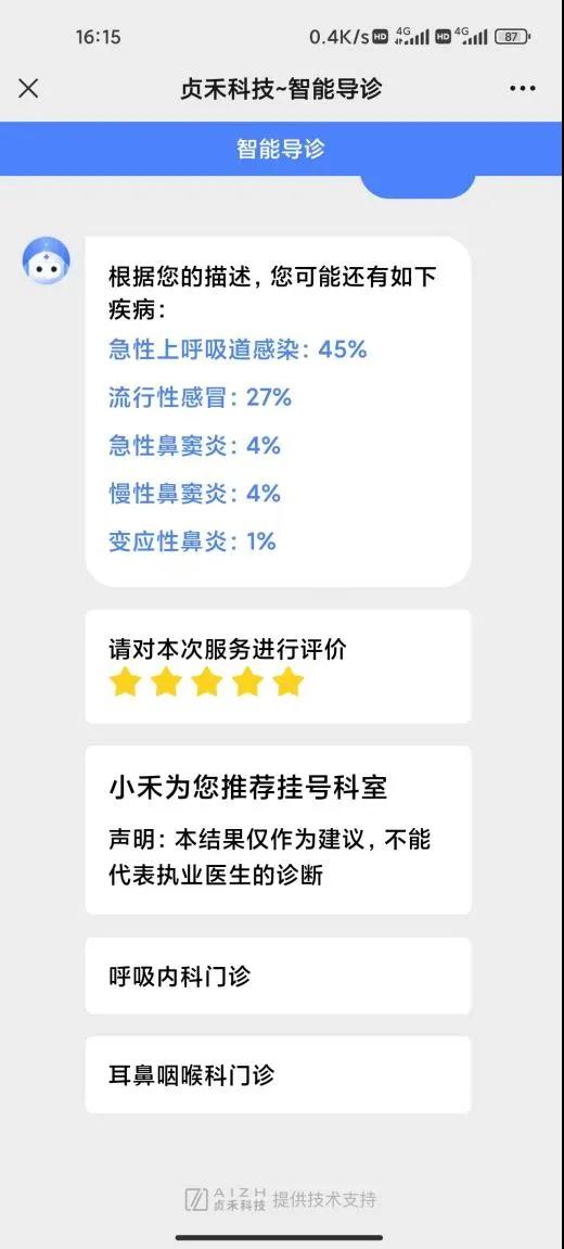 智能導(dǎo)診系統(tǒng)是通過多輪人機(jī)對(duì)話,根據(jù)患者對(duì)癥狀的描述了解患者病情,判斷患者所患疾病概率,自動(dòng)為患者推薦最合適的掛號(hào)科室,并展示相應(yīng)的醫(yī)療信息,解決患者盲目就醫(yī)問題,有效提升患者就醫(yī)體驗(yàn),緩解醫(yī)院導(dǎo)診咨詢壓力,推動(dòng)精準(zhǔn)就醫(yī)服務(wù)。