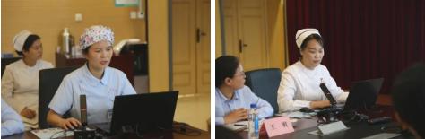 隨后,血液凈化室護(hù)士長(zhǎng)呂春曉、胸外科護(hù)士長(zhǎng)兼壓力性損傷護(hù)理學(xué)組組長(zhǎng)丁亞楠分別對(duì)我院的血液凈化用中心靜脈導(dǎo)管質(zhì)控工作、住院患者壓力性損傷管理、術(shù)中獲得性壓力性損傷管理工作落實(shí)情況進(jìn)行逐一匯報(bào)。