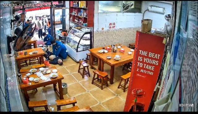 10 月 17 日中午 12 時(shí) 30 分,市二院急診科警報(bào)鈴聲響起,馬路街有一位中年男性就餐時(shí)突然暈倒、昏迷不醒、生命垂危,急需緊急救治。接到出車命令后,120指揮中心及急診科醫(yī)生王磊與現(xiàn)場(chǎng)人員保持持續(xù)通話,遠(yuǎn)程指導(dǎo),為患者進(jìn)行心肺復(fù)蘇。與此同時(shí),急救人員迅速行動(dòng),僅僅 3 分鐘就趕到了現(xiàn)場(chǎng),快速評(píng)估后發(fā)現(xiàn)患者頸動(dòng)脈搏動(dòng)消失,無自主呼吸。