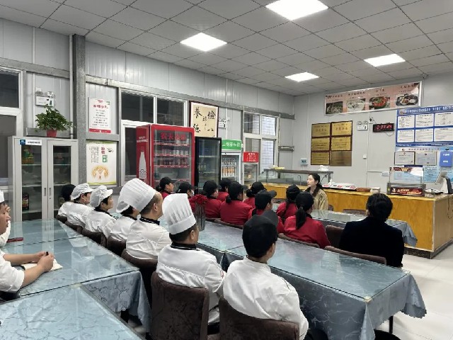 本次培訓會特邀請漯河市疾病預防控制中心食品科的吳可月醫(yī)師為餐廳工作人員講授膳食指南相關知識。醫(yī)院臨床營養(yǎng)科主任齊彤主持培訓會。