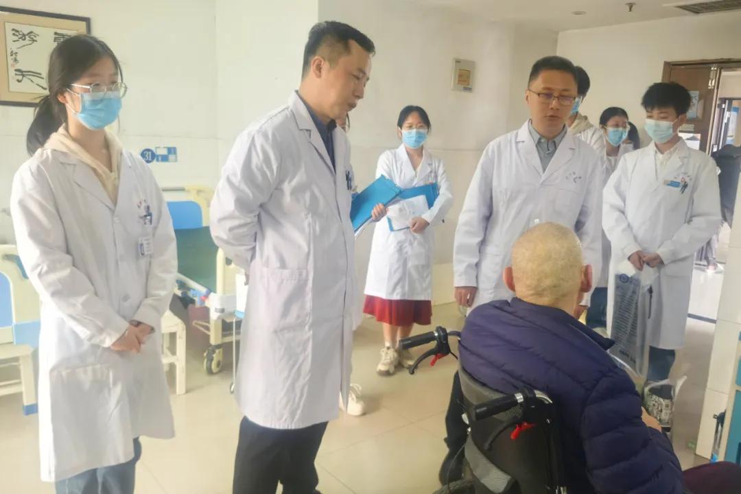 在業(yè)務(wù)查房中,胡彥輝教授通過(guò)查閱病歷資料、查體、詢問(wèn)病史、輔檢報(bào)告等,為主管醫(yī)生講解了其對(duì)一些疑難病的診療思路、病情觀察與治療要點(diǎn),并指導(dǎo)制定了疑難病患的診療方案。