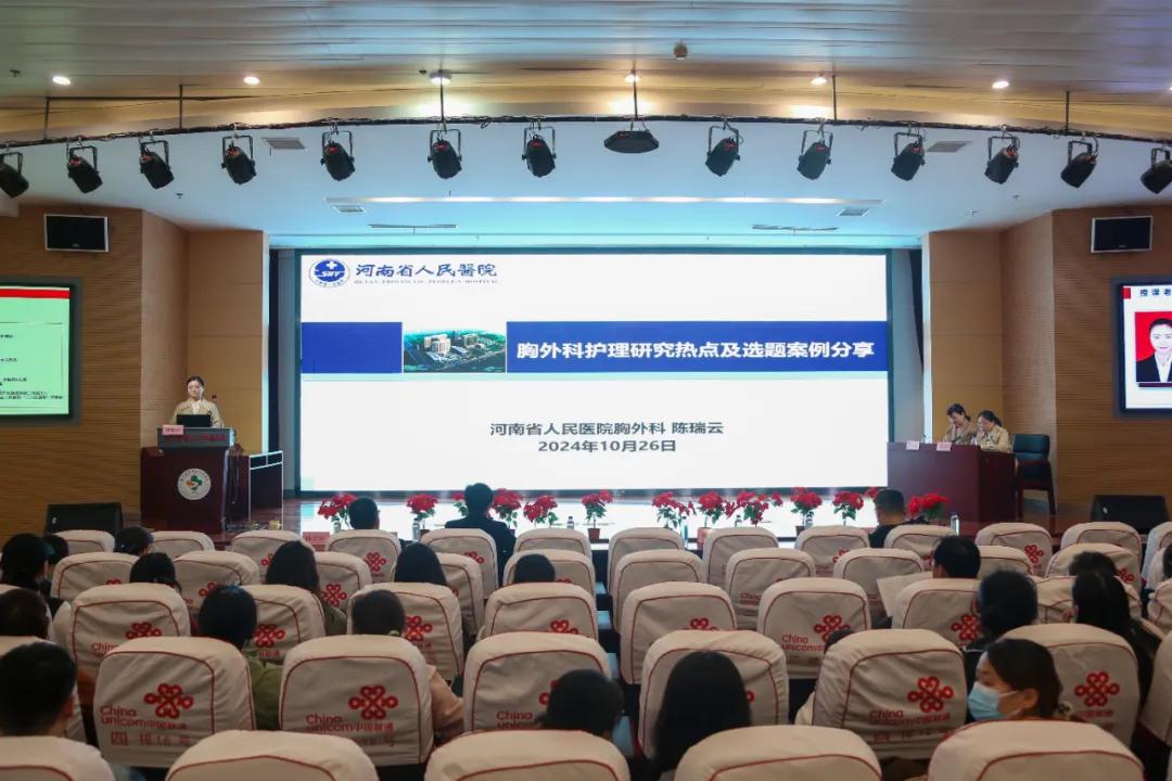 會議內(nèi)容豐富多彩,涵蓋了胸外科護(hù)理的多個(gè)熱點(diǎn)話題和前沿技術(shù)。河南省人民醫(yī)院胸外科一病區(qū)護(hù)士長陳瑞云以其深厚的學(xué)術(shù)功底和豐富的實(shí)踐經(jīng)驗(yàn),為大家?guī)砹恕缎赝饪谱o(hù)理研究熱點(diǎn)分析及選題案例分享》。她通過生動的案例,深入剖析了當(dāng)前胸外科護(hù)理領(lǐng)域的研究熱點(diǎn),為參會者提供了寶貴的選題思路和研究方向。
