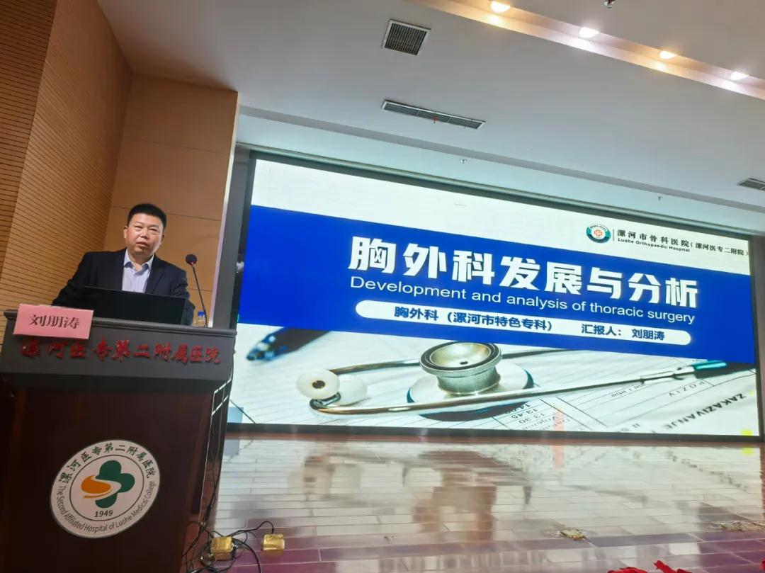 漯河醫(yī)專二附院胸外科主任劉朋濤則從??瓢l(fā)展的角度,為大家?guī)砹恕缎赝鈱?瓢l(fā)展分析》。他結(jié)合國內(nèi)外胸外科的最新發(fā)展動態(tài),深入分析了胸外科??平ㄔO(shè)面臨的機(jī)遇與挑戰(zhàn),并提出了相應(yīng)的對策和建議。