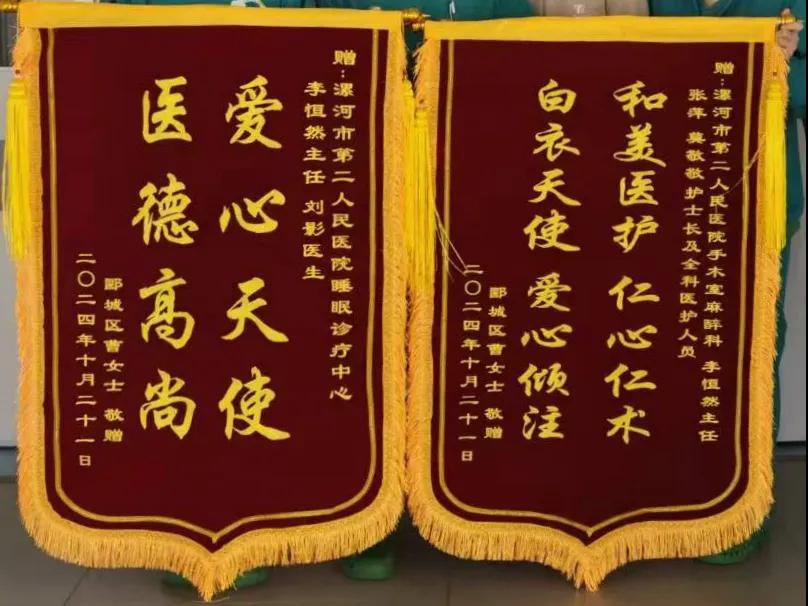 經(jīng)過醫(yī)護人員的精心治療和護理,曹女士術(shù)后迅速恢復,狀態(tài)良好,長時間折磨身心的病痛一夜之間被解除,患者及家屬非常滿意和感動。出院時,曹女士及家屬特別制作了兩面錦旗來表達感激之情,她感慨地說:“如果不是及時來到市二院,我可能還要忍受更多的痛苦?,F(xiàn)在我終于可以睡個安穩(wěn)覺了。