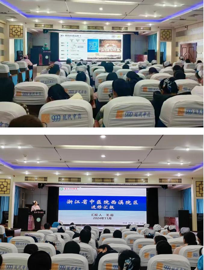 接著,急診科護(hù)士長(zhǎng)段銳、兒童康復(fù)科護(hù)士長(zhǎng)王莉10月份作為護(hù)士長(zhǎng)進(jìn)修的第三組赴浙江省中醫(yī)院進(jìn)修學(xué)習(xí)。兩位從管理亮點(diǎn)、護(hù)理技術(shù)、文化建設(shè)、服務(wù)流程等方面進(jìn)行了詳細(xì)匯報(bào),并結(jié)合各自的專(zhuān)業(yè)特點(diǎn)和學(xué)習(xí)內(nèi)容,從自身實(shí)踐、學(xué)習(xí)收獲、未來(lái)發(fā)展等方面分享了學(xué)習(xí)成果。分享中的新知識(shí)、新技術(shù)和先進(jìn)的理念,讓大家耳目一新,紛紛表示拓寬了工作思路,獲益匪淺。
