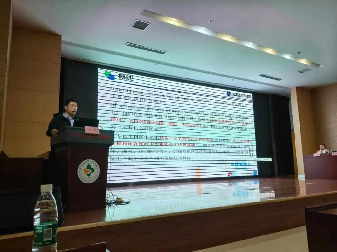 院紀(jì)委書記劉國(guó)鋒教授致辭,強(qiáng)調(diào)全科醫(yī)學(xué)不僅是醫(yī)療衛(wèi)生體系中的重要組成部分,也是保障人民健康、實(shí)現(xiàn)醫(yī)療衛(wèi)生資源均衡配置的關(guān)鍵力量。未來學(xué)科發(fā)展應(yīng)重視基層全科醫(yī)師培訓(xùn),促進(jìn)市縣鄉(xiāng)鎮(zhèn)社會(huì)規(guī)范化診療,共同推動(dòng)全科醫(yī)學(xué)事業(yè)的發(fā)展。