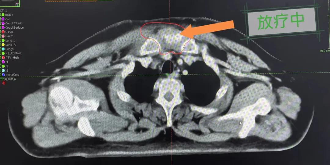 隨后,趙亮主任帶領(lǐng)放療團隊以最快的速度完成了患者的放射治療計劃,在保證放療精準打擊腫瘤的同時,利用先進的三維立體精確放療技術(shù),最大限度的避免心臟、肺部的損傷發(fā)生,整體治療精準度達到1mm以內(nèi)。經(jīng)過10次的放射治療后,患者疼痛已明顯減輕,胸部腫物肉眼可見的縮小,患者及家屬臉上終于露出久違的笑臉。