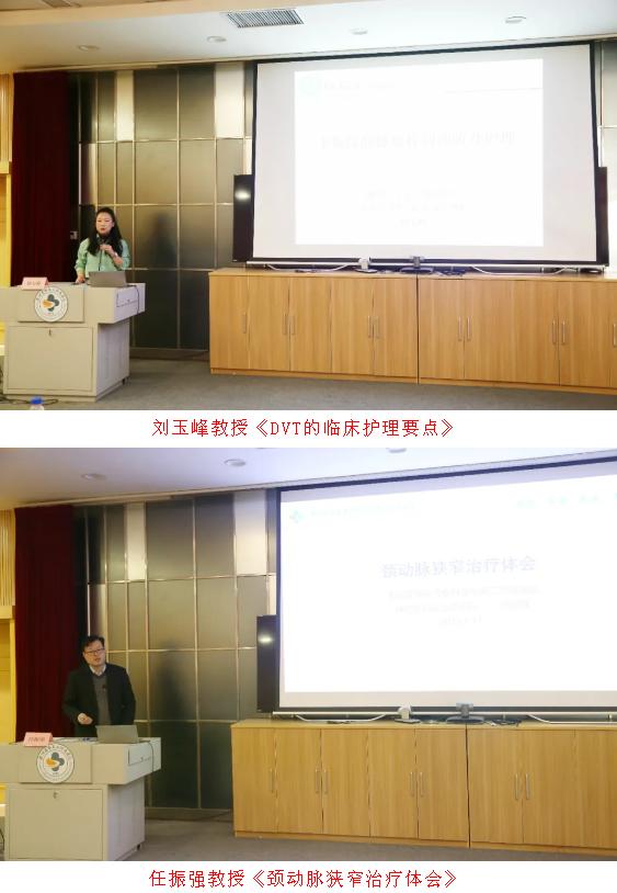學(xué)術(shù)會上,宋燕教授、苗仁英教授、楊博教授、付一群教授、牛曉陽教授、劉衛(wèi)萍教授、劉玉峰教授、漯河醫(yī)專二附院神經(jīng)外科副主任振強教授、漯河醫(yī)專二附院急診外科副主任張曉光教授、漯河醫(yī)專二附院急診外科程書強教授等分別圍繞《頸動脈狹窄的指南解讀》《淺談頸動脈狹窄的外科治療一術(shù)式選擇的進(jìn)階之路》《下肢動脈硬化閉塞癥腔內(nèi)治療策略及病例分享》《靜脈曲張的微創(chuàng)化診療》《VTE防控體系構(gòu)建及病例分享》《DVT的臨床護(hù)理要點》《頸動脈狹窄治療體會》《頸深淋巴-靜脈吻合術(shù)治療阿爾茨海默病》《下肢深靜脈血栓的診治》等為題,為現(xiàn)場血管外科同仁進(jìn)行了精彩的學(xué)術(shù)報告。學(xué)術(shù)會上,與會觀眾積極圍繞相關(guān)課題向授課專家提問,并進(jìn)行探討交流,現(xiàn)場始終充滿濃厚的學(xué)術(shù)氛圍。