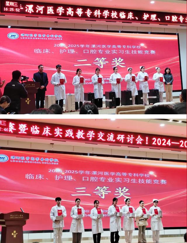 1月8日,在由漯河醫(yī)學高等??茖W校主辦,漯河市中心醫(yī)院承辦的“2024-2025學年漯河醫(yī)學高等專科學校臨床、護理、口腔專業(yè)實習生技能競賽”中,漯河市中醫(yī)院實習生代表隊獲得一個二等獎、兩個三等獎、一個優(yōu)秀獎的好成績。