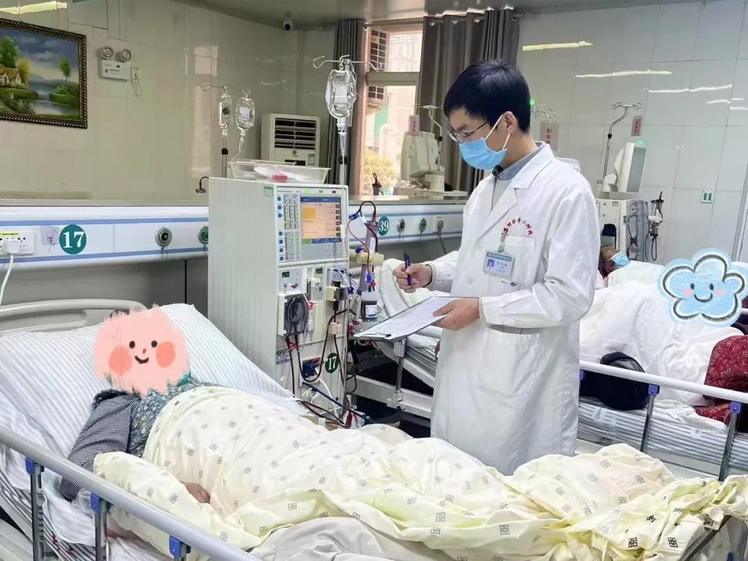 在日常工作中,賈醫(yī)生對待每一位患者都認(rèn)真負(fù)責(zé)。透析治療流程復(fù)雜,他卻一絲不茍。從仔細(xì)查看患者狀況、熟練進(jìn)行上機(jī)操作,到根據(jù)每位患者的身體狀況制定個(gè)性化的透析方案,每一個(gè)環(huán)節(jié)都凝聚著他的專業(yè)與專注。透析時(shí)間漫長,分上午、下午、晚上進(jìn)行,每次長達(dá) 4 小時(shí),賈醫(yī)生始終堅(jiān)守在透析室,時(shí)刻關(guān)注患者情況,耐心解答患者的疑問,及時(shí)調(diào)整治療方案。他的專業(yè)和負(fù)責(zé),不僅讓患者安心,也吸引了眾多患者家屬前來找他看病。