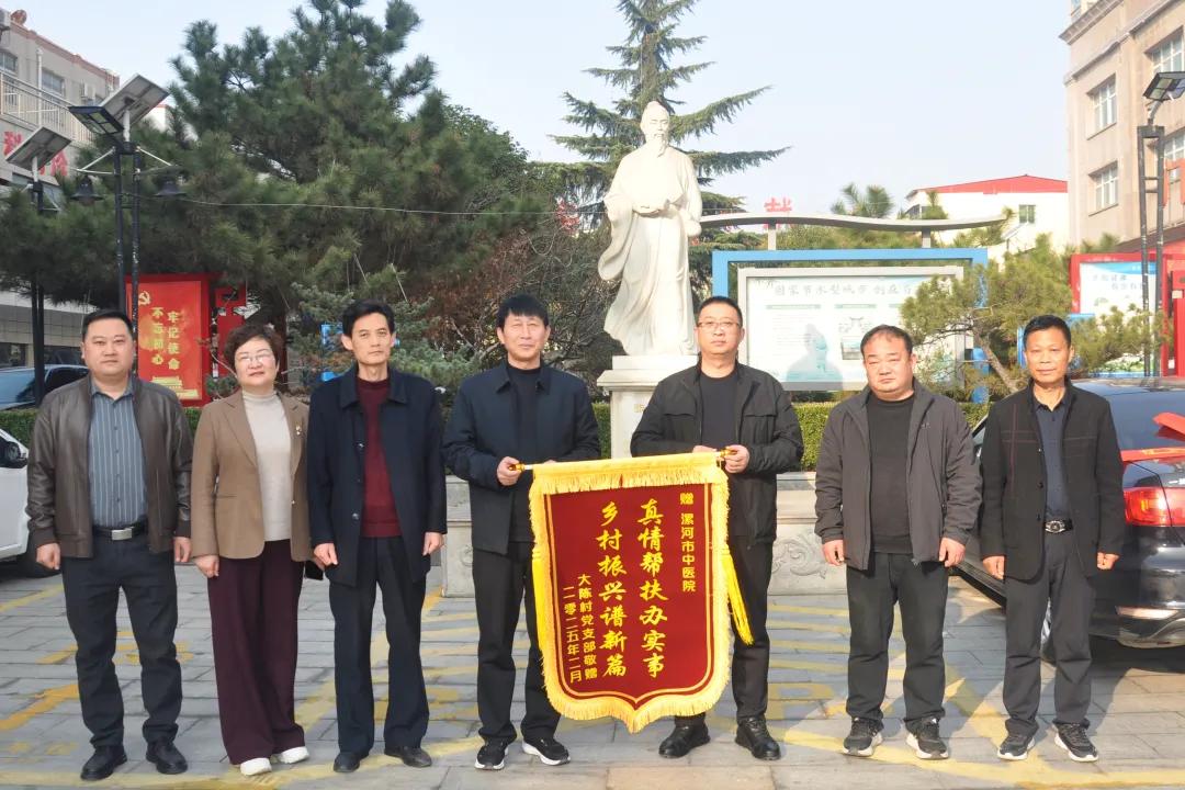 2月28日上午,源匯區(qū)大劉鎮(zhèn)黨委書(shū)記郭嘉琦帶領(lǐng)鎮(zhèn)干部同大陳村“兩委”干部一行來(lái)到漯河市中醫(yī)院,將“深情幫扶辦實(shí)事,鄉(xiāng)村振興譜新篇 ”和“駐村幫扶勇?lián)?dāng),恪盡職守解民憂”兩面錦旗分別送到漯河市中醫(yī)院黨委副書(shū)記、副院長(zhǎng)張文吉和醫(yī)院派駐大陳村“第一”書(shū)記朱振華的手中,以此感謝漯河市中醫(yī)院兩年多來(lái)對(duì)大劉鎮(zhèn)大陳村脫貧攻堅(jiān)以及鄉(xiāng)村振興工作的傾情幫扶和大力支持,院黨委副書(shū)記、副院長(zhǎng)張文吉帶領(lǐng)相關(guān)科室負(fù)責(zé)人接待并召開(kāi)座談會(huì)。
