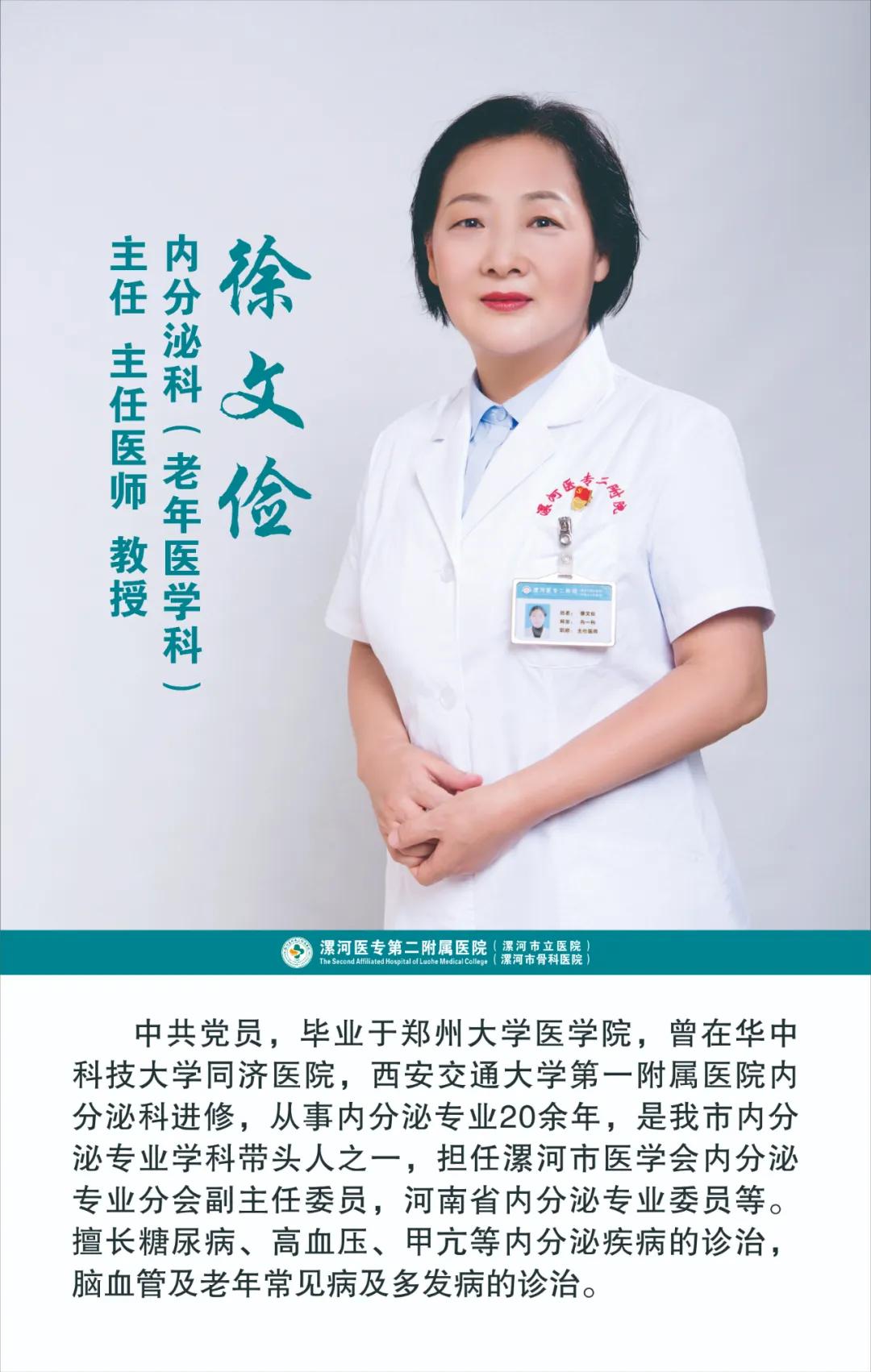 名醫(yī)風(fēng)采|漯河醫(yī)專二附院 內(nèi)分泌科(老年醫(yī)學(xué)科)主任 徐文儉教授