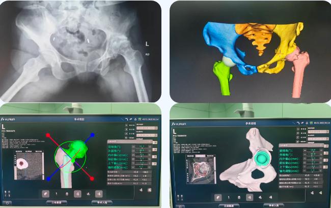 見(jiàn)到患者后,智能微創(chuàng)骨科宛磊主任團(tuán)隊(duì)隨即對(duì)其完善了相關(guān)檢查,經(jīng)診斷其左側(cè)股骨頭無(wú)菌性壞死,屬化膿性髖關(guān)節(jié)炎的遠(yuǎn)期性并發(fā)癥。為盡快幫助患者緩解病痛,團(tuán)隊(duì)為其開(kāi)通了綠色通道,并進(jìn)行多學(xué)科會(huì)診,排除手術(shù)禁忌后,入院第二天在全身麻醉下行“機(jī)器人輔助下左側(cè)人工全髖關(guān)節(jié)置換術(shù)”。手術(shù)期間,手術(shù)機(jī)器人發(fā)揮了大功效,在精準(zhǔn)度高、創(chuàng)口小、出血少的情況下完成手術(shù)。