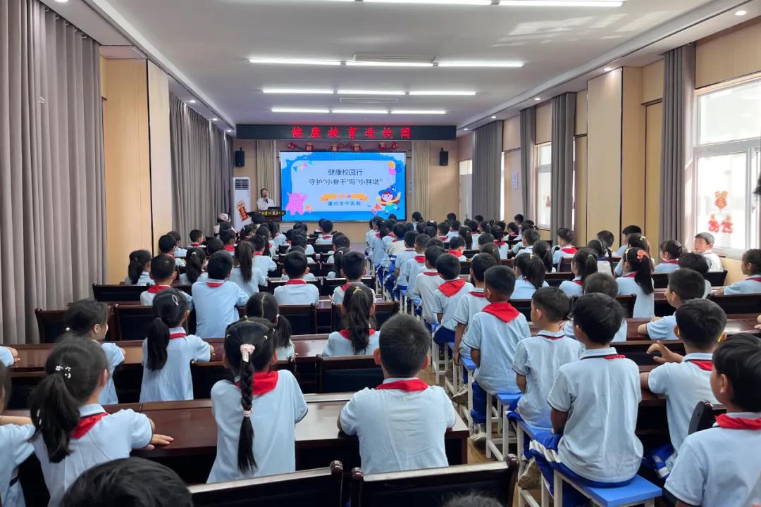 講座伊始,白紅麗醫(yī)生以“五小健康計劃(2025—2027年)”為切入點,深入淺出地講解了兒童健康五大焦點問題:“小胖墩”,揭秘零食中的“脂肪怪獸”,提醒學(xué)生警惕高糖高脂陷阱,并通過“快樂運動小游戲”倡導(dǎo)家庭與校園聯(lián)動運動。“小骨干”,通過“脊柱側(cè)彎小課堂”,用“骨頭小樹長歪了”的比喻,形象說明脊柱變形的危害,現(xiàn)場演示“坐如松”的正確姿勢。“小眼鏡”“小星星”“小蛀牙”,分別從科學(xué)用眼、心理調(diào)適和口腔保健角度,給出實用建議,如“45分鐘用眼休息法”“營養(yǎng)餐盤搭配法”等。
