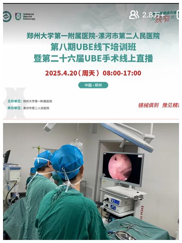 據(jù)悉,鄭州大學第一附屬醫(yī)院骨科團隊已經(jīng)連續(xù)開展了25屆UBE手術(shù)線上直播、七期線下培訓活動。此次將培訓班放在市二院舉辦,是希望通過交流互動,將UBE技術(shù)的最新理念和操作技巧在漯河扎根。