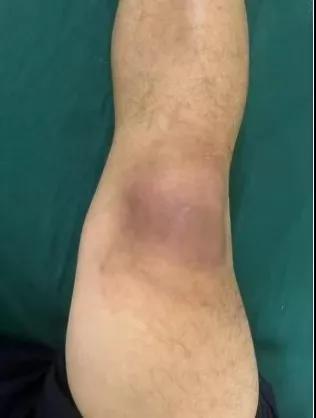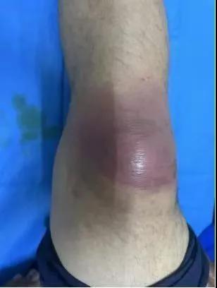 患者,以“外傷致右膝紅腫、疼痛20余天”為主訴就診,20余天前,因騎電車摔傷右膝關(guān)節(jié),致使出現(xiàn)右膝腫脹、疼痛、活動受限,在當(dāng)?shù)蒯t(yī)院給予消腫、止痛治療效果差,繼而出現(xiàn)膝關(guān)節(jié)紅腫熱痛癥狀,門診給予滑膜炎片及消腫止痛藥物治療癥狀未見好轉(zhuǎn),慕名前來我院手顯微外科住院。入院當(dāng)天即給予中藥外敷(骨炎膏),穿刺膿性分泌物送細(xì)菌培養(yǎng),給予廣譜抗生素治療(細(xì)菌培養(yǎng)未出)。