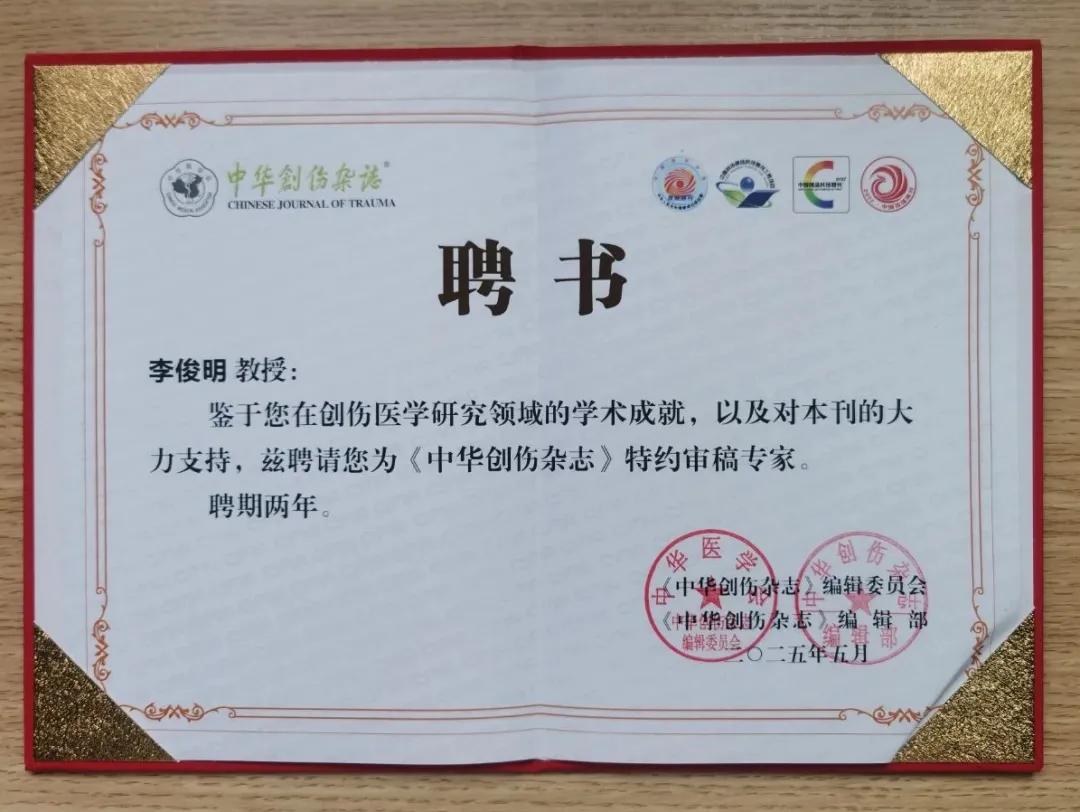 近日,漯河醫(yī)專二附院(漯河市骨科醫(yī)院、漯河市立醫(yī)院)手顯微外科(修復(fù)重建外科)主任兼大骨科副主任、骨科三級主任醫(yī)師、碩士研究生導(dǎo)師李俊明教授被《中華創(chuàng)傷雜志》特聘為特約審稿專家。此殊榮是對其在手顯微外科醫(yī)學(xué)研究領(lǐng)域?qū)W術(shù)能力的肯定,也彰顯了醫(yī)院在該領(lǐng)域的成就,為醫(yī)院發(fā)展提供了與國內(nèi)外頂尖專家交流的寶貴機(jī)會。
