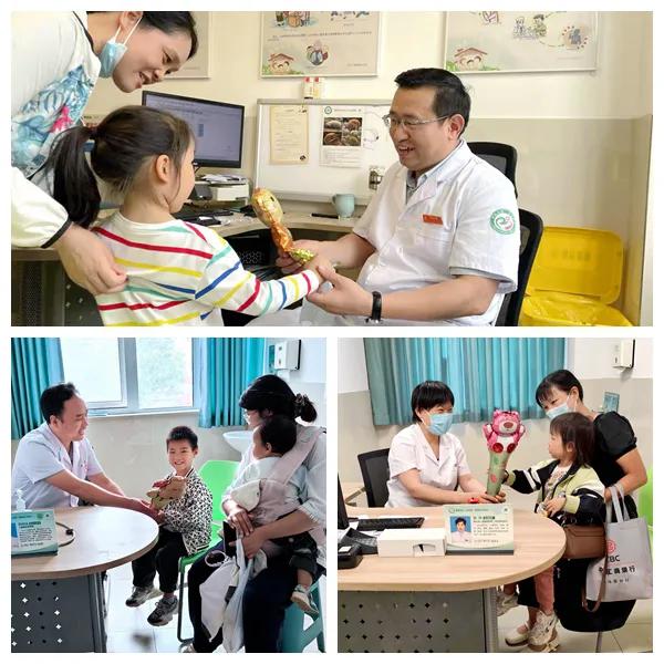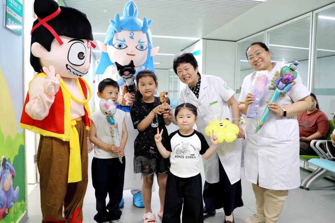 門診大廳化身兒童樂園,醫(yī)護(hù)人員化身哪吒、敖丙、花仙子等諸多可愛的卡通人物與小朋友們熱情互動(dòng),友好交流,派發(fā)精心準(zhǔn)備的節(jié)日禮物。市二院黨委書記魏松,黨委副書記、院長(zhǎng)胡海英攜班子成員及兒科專家、醫(yī)護(hù)團(tuán)隊(duì)為小朋友們送上暖心的節(jié)日禮物與祝福,與孩子們共度“六一”。