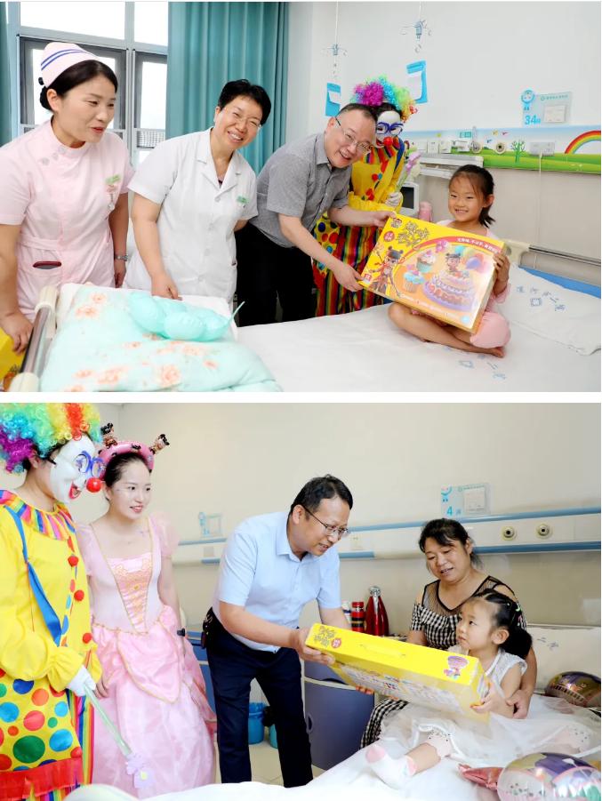 隨后,院領(lǐng)導(dǎo)一行分別到兒科門診、住院病房,看望慰問就診、住院的孩子們。走訪過程中,院領(lǐng)導(dǎo)為孩子們送上節(jié)日祝福與精美的禮物,俯身與孩子們親切交流,細(xì)心詢問他們的治療情況,并特別囑咐醫(yī)護(hù)人員要始終秉持醫(yī)者仁心,以專業(yè)的醫(yī)療技術(shù)和無微不至的關(guān)懷服務(wù)每一位患兒。歡樂的笑容在孩子們臉上綻放,溫馨的氛圍感染著在場(chǎng)的每一個(gè)人,患兒家屬紛紛對(duì)醫(yī)院領(lǐng)導(dǎo)的暖心慰問表示誠(chéng)摯的謝意。